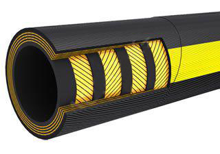 Construction: This hose consists of an inner tube of oil synthetic rubber, four wire braids reinforcement, and an oil and weather resistant synthetic rubber cover.