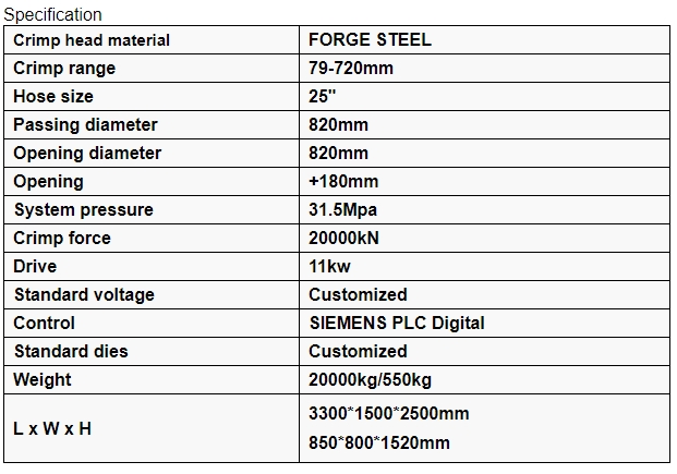 The crimp force of KLS Y800 SIEMENS PLC Digital hydraulic hose crimping machine is 20000KN,