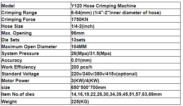 is 2000KN, with a crimp range of 3~80mm and 10 sets of standard dies.