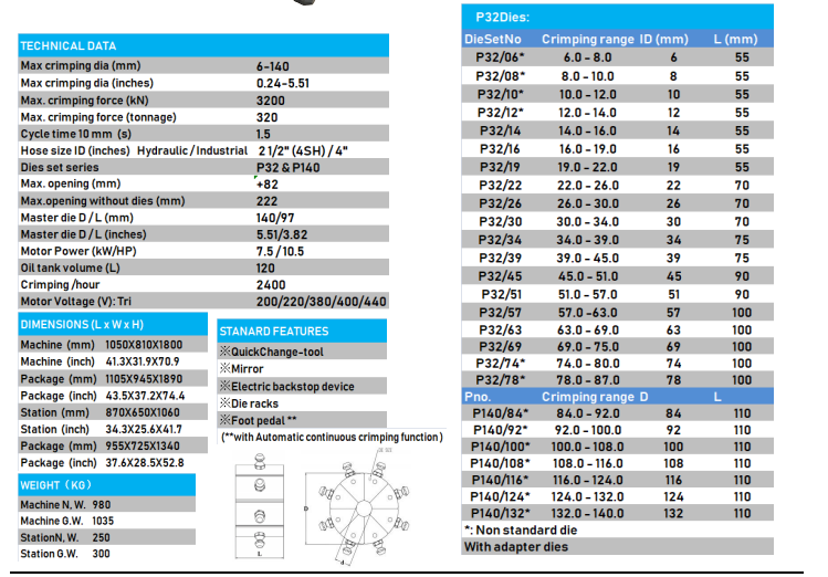 KLSP140 hose-crimping machine has been designed to crimp up to 21/2"